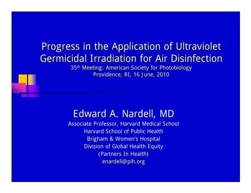 Progress In The Application Of Ultraviolet Germicidal Irradiation For Air Disinfection 35 Th Meeting American Society For Photobiology Providence Ri Ppt Download